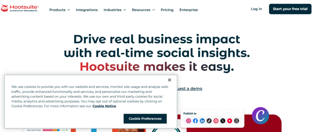 | Hootsuite | Social mgmt | $99/mo | No | Multi-platform posting | Strong | Limited |