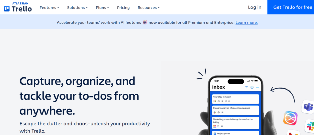 Trello integrates with tools like Slack, Google Drive, and Zapier. This helps startups connect their workflow with the rest of their growth stack.