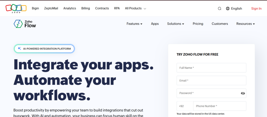 | Zoho Flow | App automation | £8/mo | Yes | Zoho ecosystem | 4.4 | Medium |