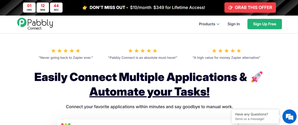 | Pabbly Connect | Budget automation | £16/mo | Yes | One-time plans | 4.3 | Medium |
